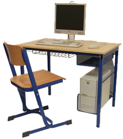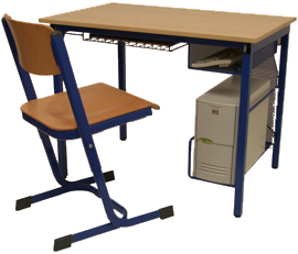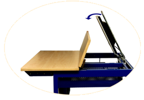 PC Stůl se sklopným TFT-monitorem Revoluční řešení rychlého sklopení monitoru do konstrukce stolu. |